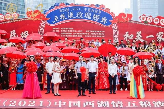 10月6日,第23届(2021)中国西湖情五粮液玫瑰婚典在爱情之都杭州浪漫上演。