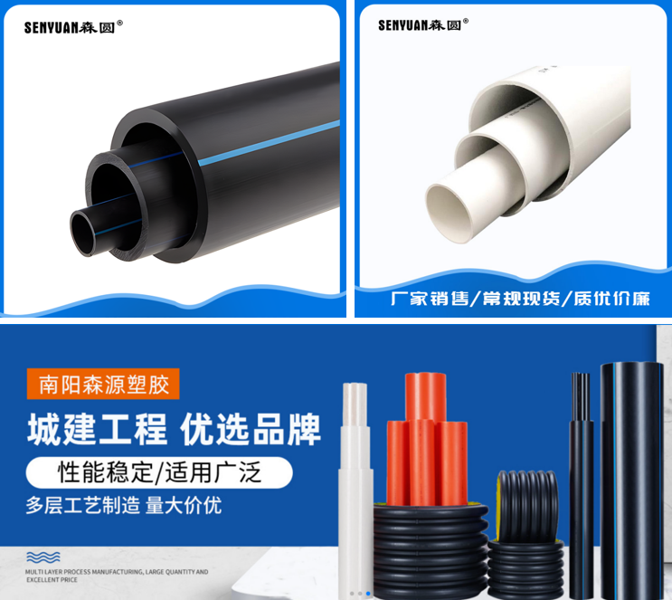 南阳森源塑胶有限公司(以下简称:南阳森源塑胶),位于中部地区重要的交通枢纽河南南阳社旗县产业聚集区内,创建于2006年, 深耕塑胶管材行业16年,是一家集研发及销售于一体的PVC、PE及PPR管材、管件生产的民营企业,注册资金2000万元, 占地面积15000多平方米,固定资产11324万元,拥有专业化生产线9条,年产各类PVC、PE、PPR塑胶管材近万吨,产品广泛应用于给水、排水工程、电气工程、通讯工程、农田节水灌溉等领域,是河南省成立较早、规模较大的专业生产塑胶管材的公司。