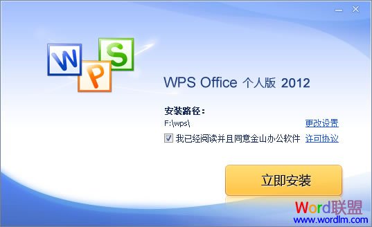 金山WPS 2010安装向导,可以单击“更改设置”进行设置保存路径。