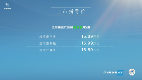 全新第三代荣威RX5共推出6款配置,官方指导价11.79-15.59万元;超混eRX5共推出3款配置,官方指导价15.39-16.59万元。新车提供丝绒银、北极蓝、珠光黑、珠光白、云锦灰5种车身颜色,搭配活力棕、典雅黑两款内饰配色,满足用户个性化需求。
