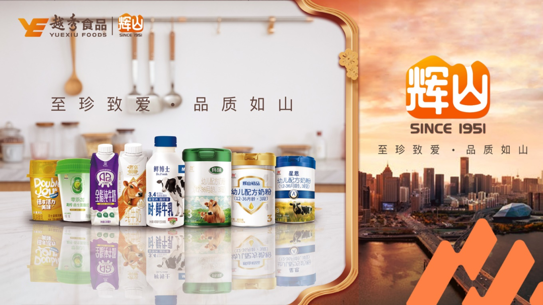2022年12月31日,越秀辉山正式启动品牌焕新工作,发布以“映日辉山”为主题、越秀橙为主色调的全新LOGO。通过更加灵动、简约、年轻化的设计风格和视觉效果,为71年品质传承的老牌乳企注入新活力。同时发布“至珍致爱,品质如山”的全新品牌理念。全新品牌标识将于2023年1月1日正式启用,未来,越秀辉山将用珍稀奶源打造的高品质产品献给最爱的消费者。