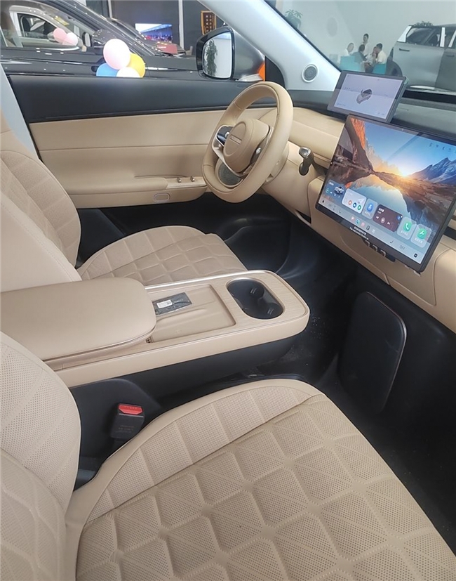 一走进展厅,我就被一辆停在C位的全新星纪元ET增程四驱吸引。当然,对于外观来说,每个人都有自己的喜好,但这辆车的外观完全长在我的审美上。新车整体看上去大气稳重,比例也很协调。内饰设计也不错,简洁也有格调。中大型SUV的车身架构,车长近5米、车宽近2米、轴距达3米,身高1.80米的我坐进去还有很多富余。同时,后排座椅也可以放倒,对于,这对于我们这种喜欢自驾游的小两口来说,非常实用,行李再多也不怕。