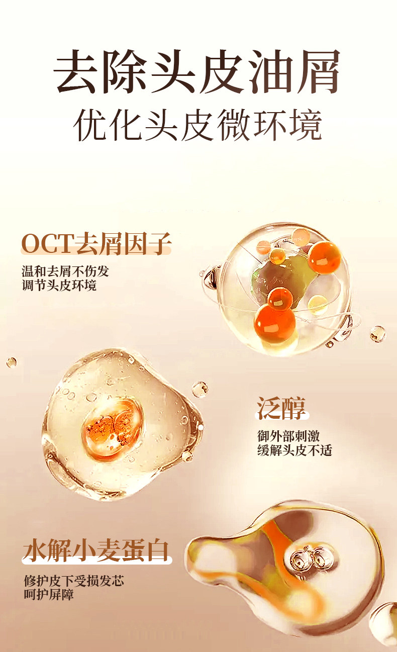 除了核心去屑成分,产品还打造了一套完善的防断健发与头皮养护成分矩阵,多成分协同作用,兼顾头皮修护与发丝强韧,让去屑与健发同步进行。侧柏叶作为传统草本养护成分,经现代药理学研究证实,其具有显著的抗炎与抑菌活性,不仅能辅助核心去屑成分抑制马拉色菌,还能缓解头皮微炎症引起的瘙痒问题,从毛囊层面巩固发根,减少发根松动导致的掉发。
